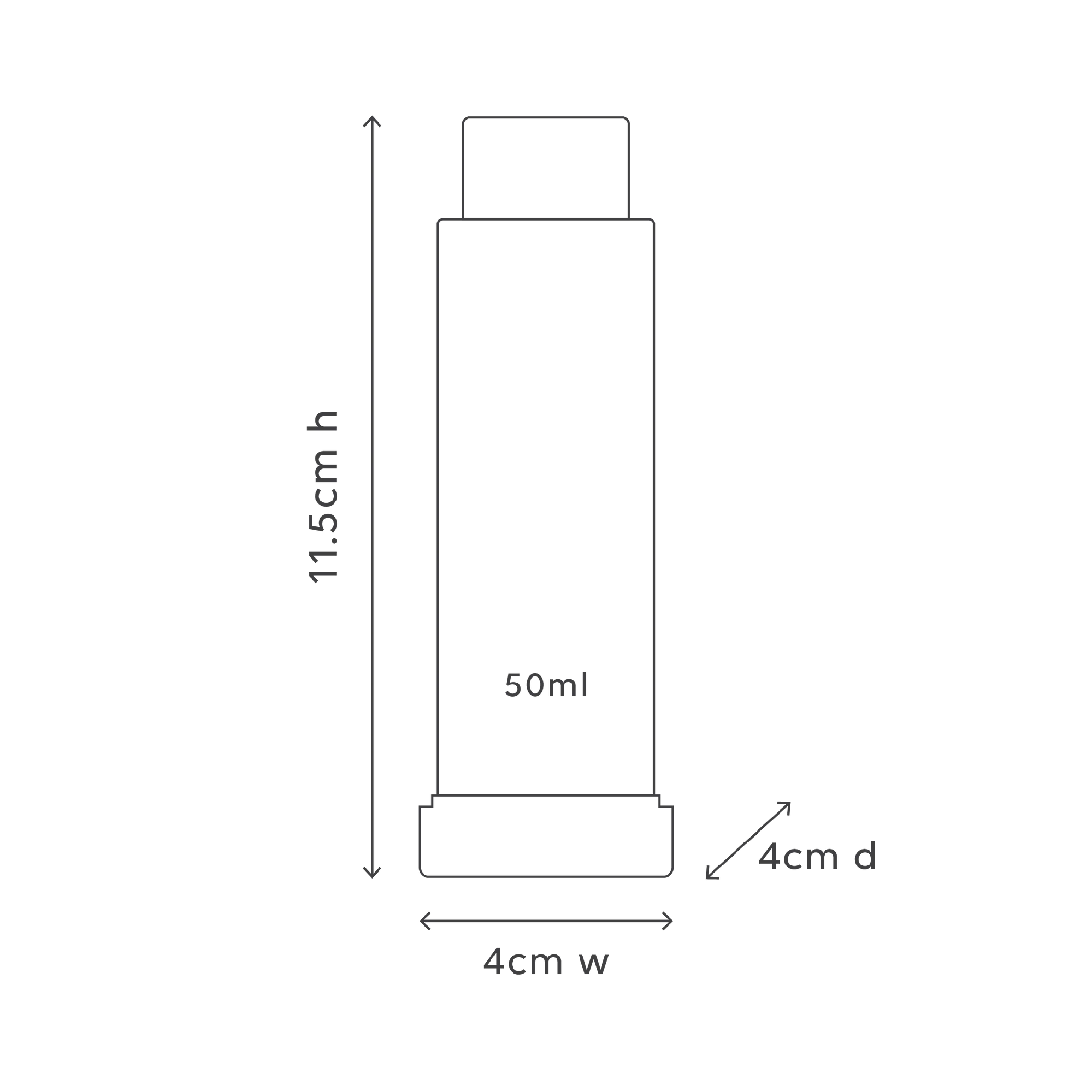 Our 50ml refill bottles are made from PP plastic, with a recyclable bottle, cap, and box.