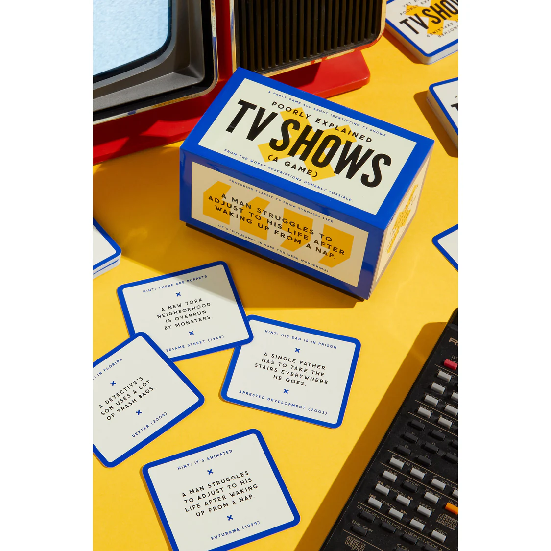 WHAT’S IN THE BOX – 300 game cards packed with hilariously inaccurate TV show synopses that sound like they were written by someone’s sleep-deprived uncle. Includes two ways to play: Competitive (for the cutthroat trivia nerds in the group) and Casual (for when you're just here for the chaos). Suitable for 2–8 players, though the more confused people you add, the funnier it gets.