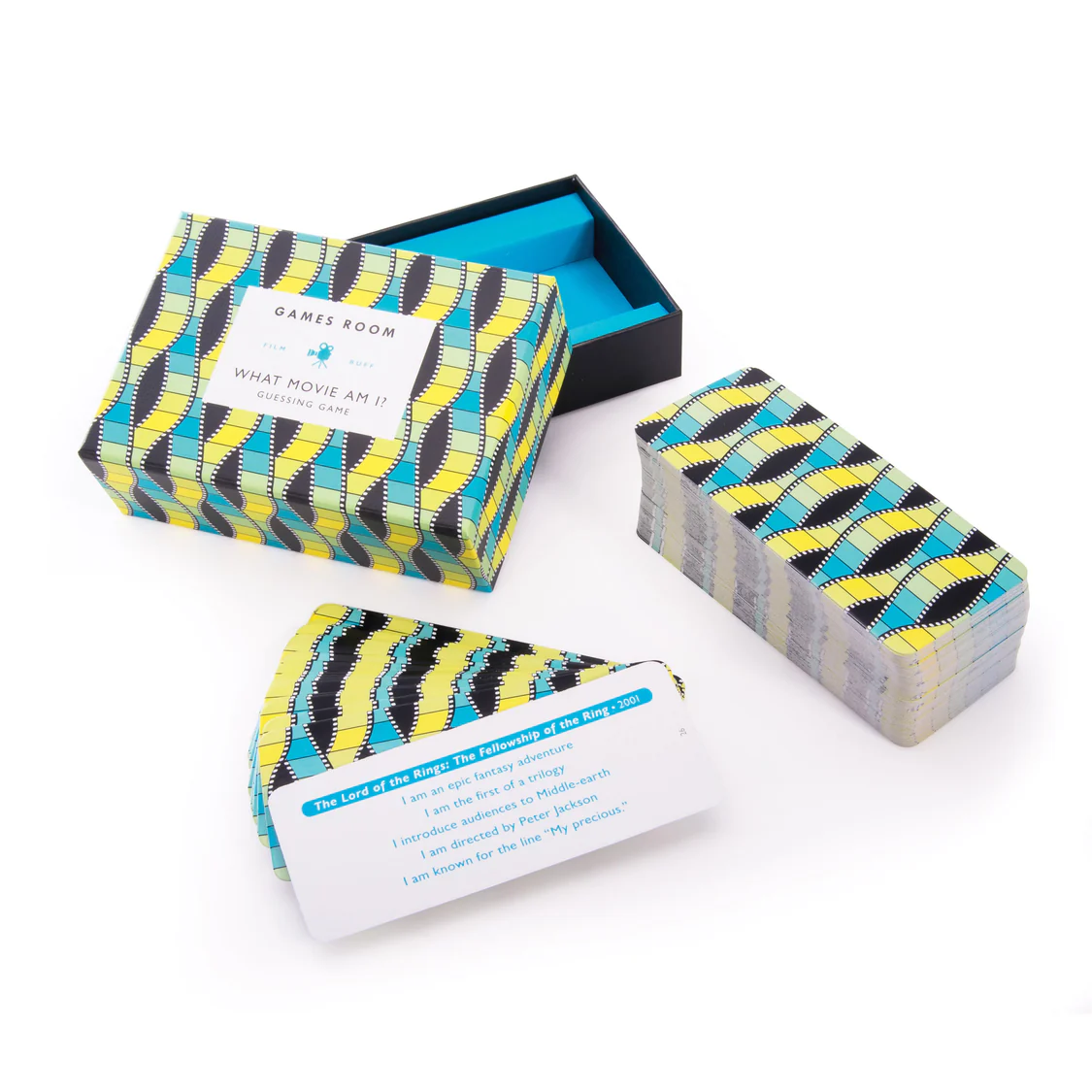 Gather around for game night with this fast-paced guessing game all about movies! Movie lovers—get ready to test your cinema smarts in the guessing game all about the gems of the silver screen! This set of 140 game cards includes an entertaining range of movies (G-rated to R-rated), from animated to action-adventure, mystery to comedy, and much more.