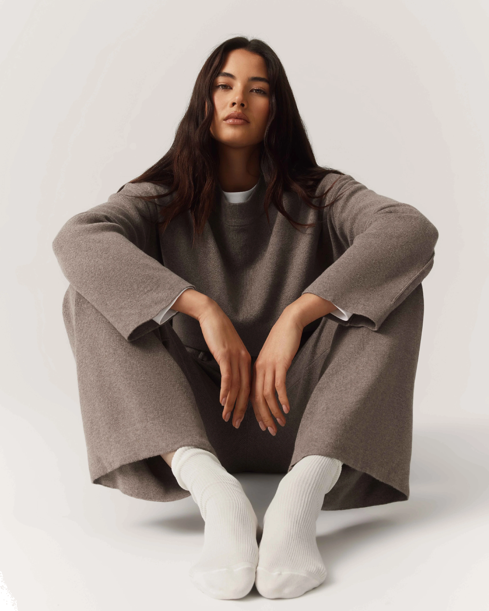 A versatile Cotton Cashmere Pant designed for everyday layering. Made from a premium blend of cotton and cashmere, it features an elasticated waist tie detail and functional pockets.