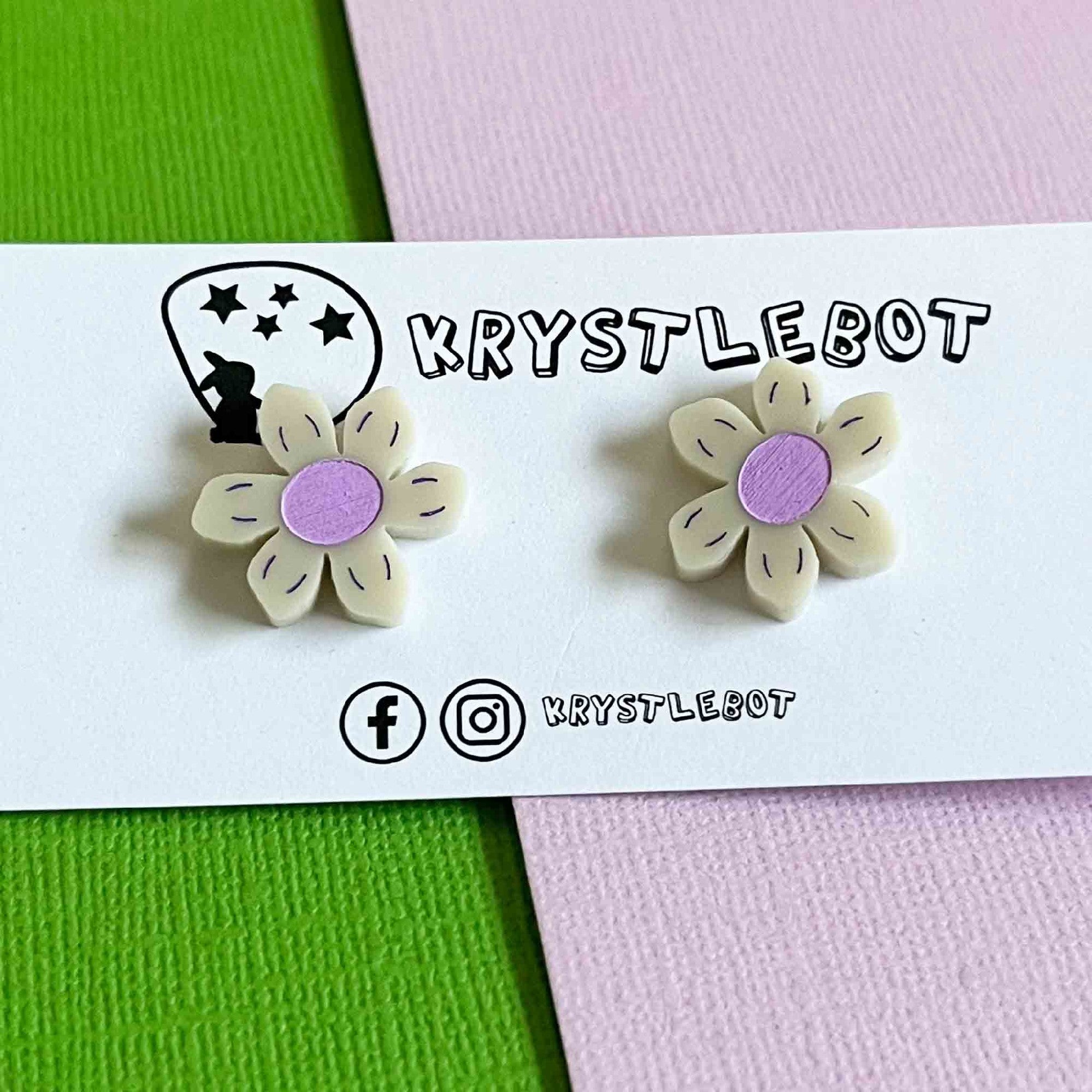 KRYSTLEBOT EARRINGS - ONE OFF STUDS | CREAM & PURPLE DAISY