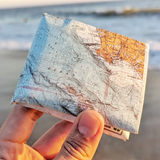 This ultra-thin wallet is made of Tyvek, a synthetic microfiber paper that is water and tear resistant. The LA Ocean Mighty Wallet features the beautiful topographical basins of the Pacific ocean between LA and Catalina Island.