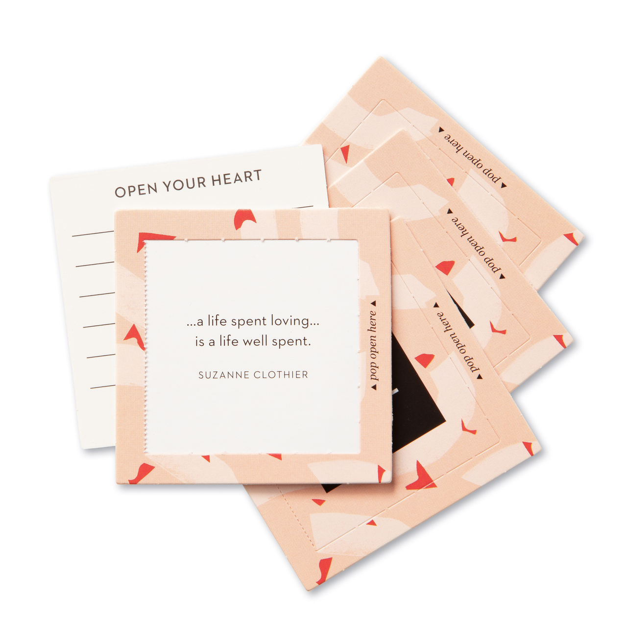 Little pop-open cards with messages inside were the first product we ever made. And they’ve been one of our most popular products ever since. Outside, you’ll find elegant designs to brighten your spirits and catch your attention. Inside, you’ll find timeless messages of inspiration to capture your heart.